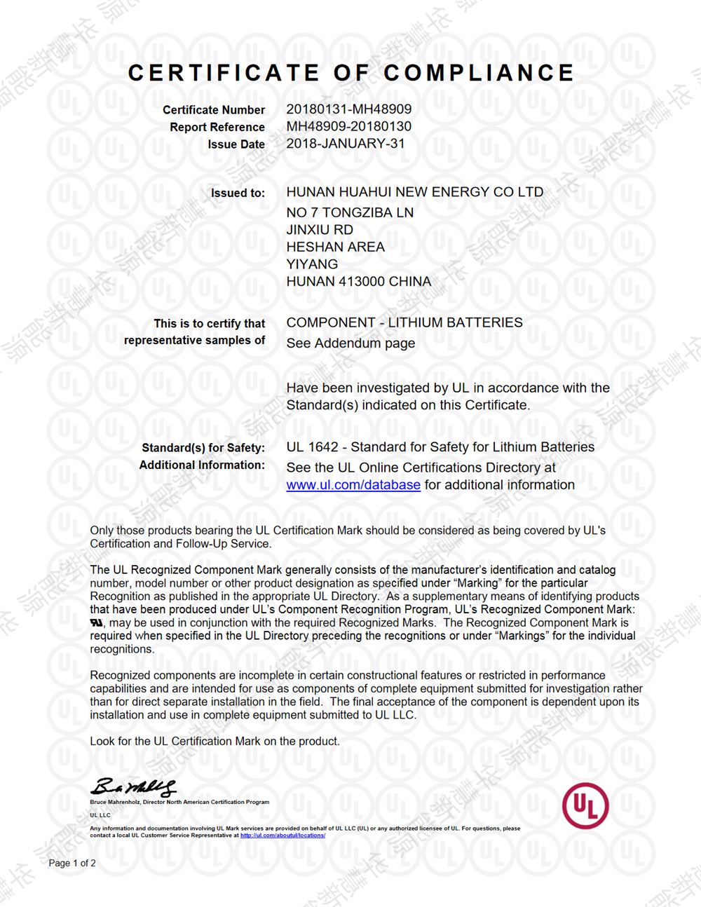 雙重防爆封裝工藝,無泄漏,無重金屬,能量密度大,一致性好。 華慧能源三元鋰系列電池廣...