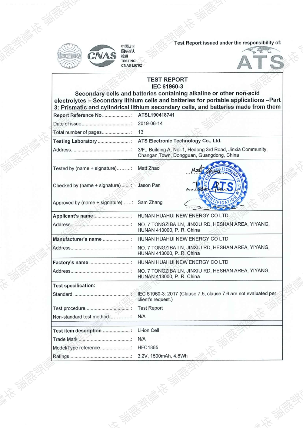 雙重防爆封裝工藝,無泄漏,無重金屬,能量密度大,一致性好。 華慧能源三元鋰系列電池廣...