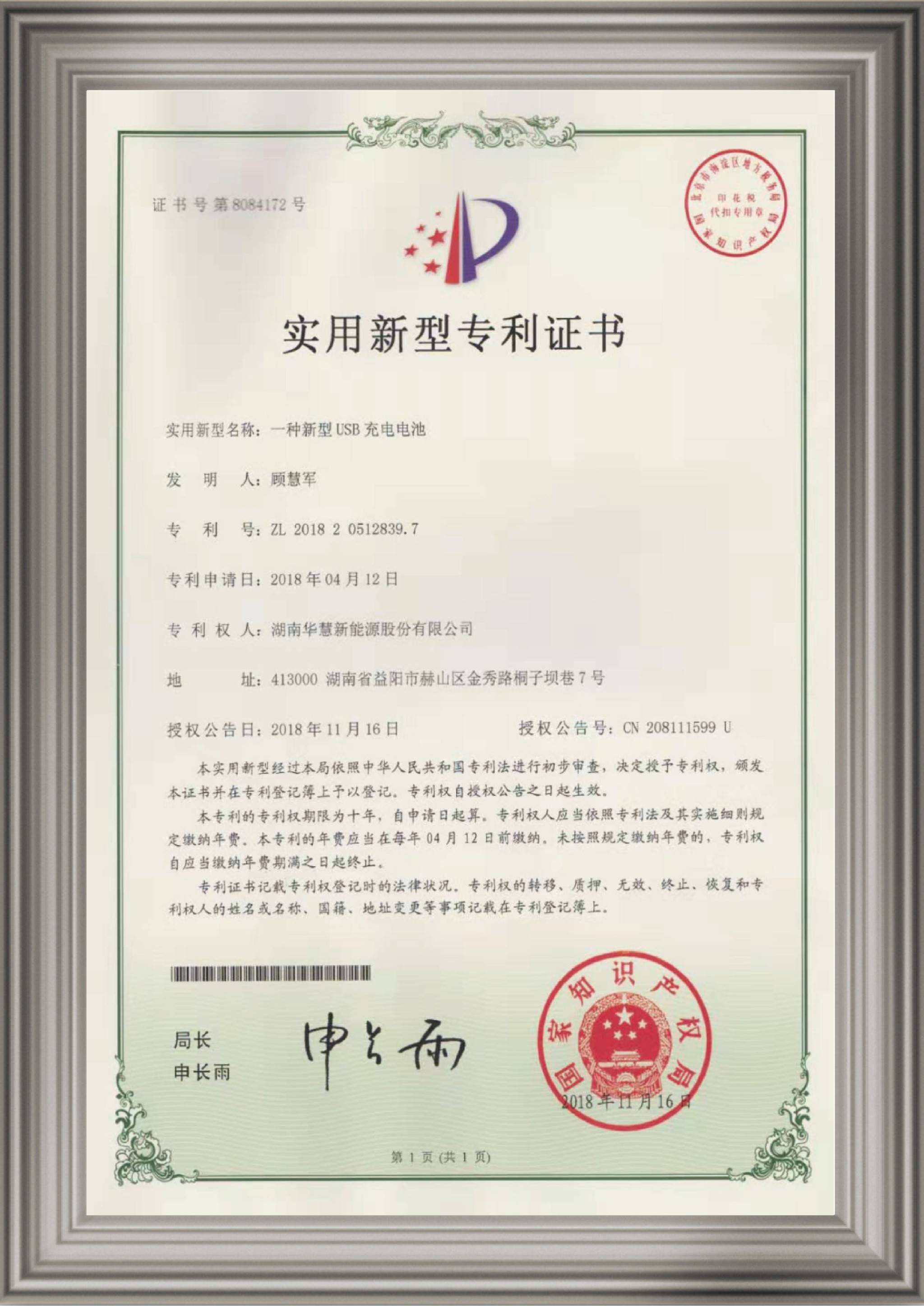 華慧新能源專利 | 一種種新型USB充電電池